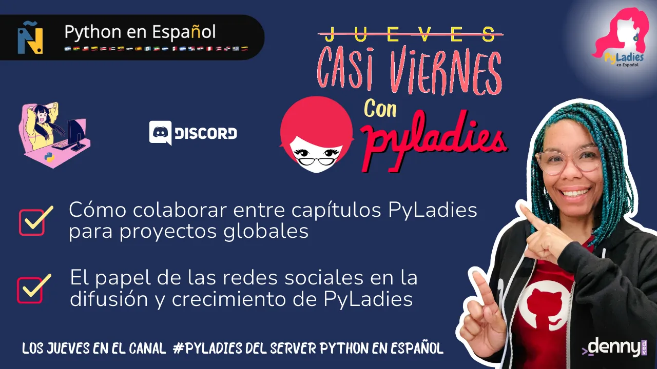 Casi Viernes con PyLadies es un streaming bi-semanal dedicado a explorar cómo crear y fortalecer comunidades de mujeres en torno al lenguaje de programación Python. Esta iniciativa busca responder todas las dudas sobre cómo comenzar capítulos de PyLadies y los procesos necesarios para mantenerlos activos. Es un espacio para socializar, compartir experiencias y aprender más sobre la comunidad global de PyLadies. ¡Te invitamos a unirte y compartir experiencias en esta comunidad!