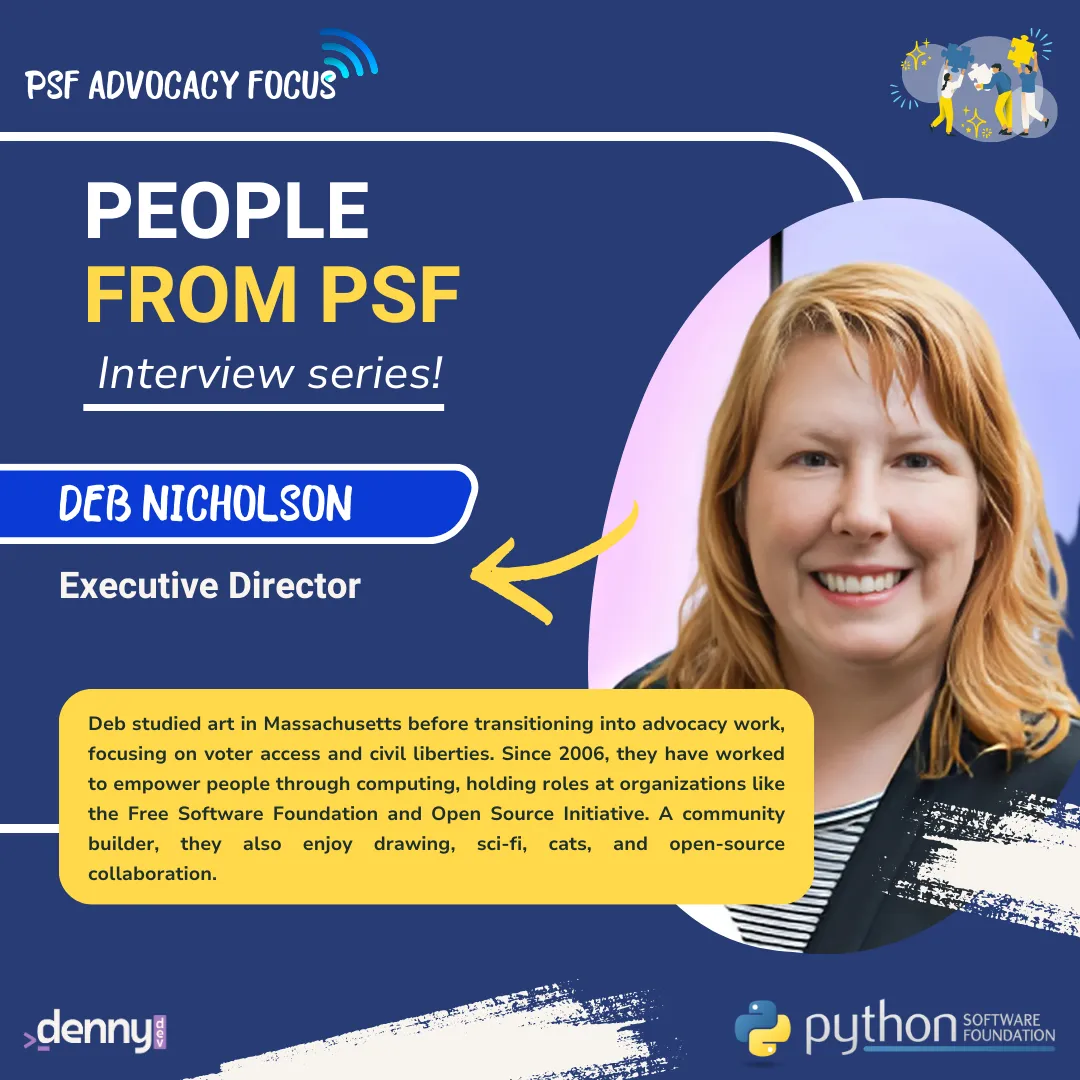 Welcome to our “People from PSF” interview series! In this series, we introduce the individuals behind the Python Software Foundation, exploring their unique journeys, contributions, and insights. Today, we are excited to feature Deb Nicholson, Executive Director of the PSF.